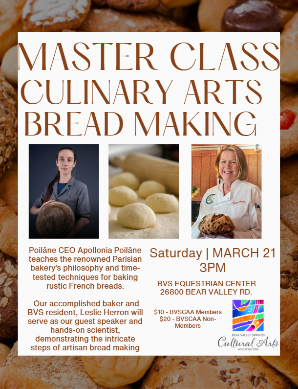 Leslie Herron will be our guest speaker and hands-on scientist, demonstrating the intricate steps of artisan bread making. She will share her secrets and demonstrate methods of a more user-friendly, simplified process of artisan bread making